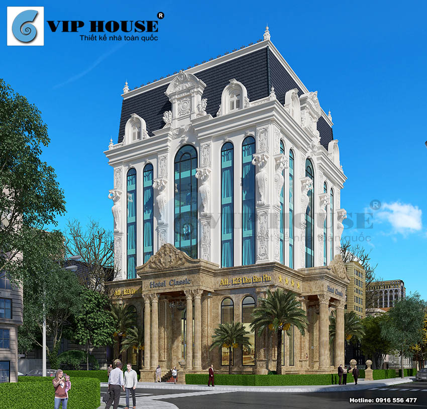 1. Công trình : Thiết kế kiến trúc khách sạn tân cổ điển 9 tầng tại Quy Nhơn