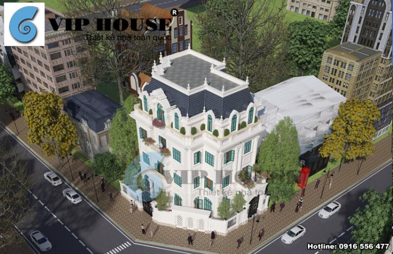 Toàn bộ phối cảnh 4 tầng của ngôi biệt thự tân cổ điển hiện lên sừng sững và uy nghi thể hiện đẳng cấp của chủ đầu tư.