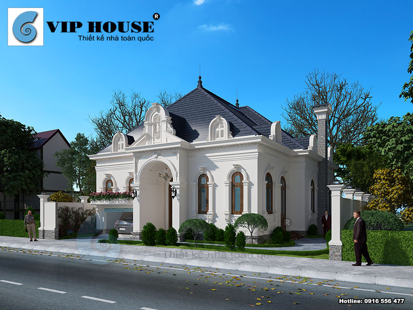 Thiết kế biệt thự kiểu Pháp 1 tầng kiến trúc tân cổ điển mang đến một không gian rộng rãi, sang trọng và vô cùng tiện nghi thoải mái cho các thành viên trong gia đình.