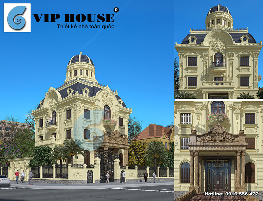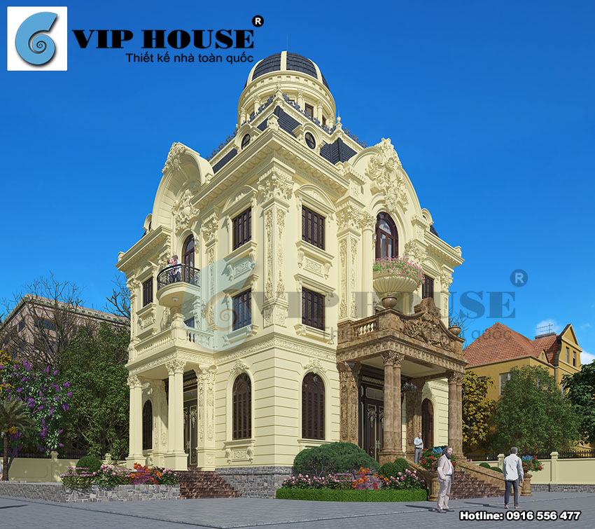 Sử dụng tone màu vàng làm chủ đạo, nổi bật với hệ mái vòm đặc trưng, khối mái chóp bề thế, những chi tiết gờ, phào chỉ tinh tế nhẹ nhàng làm ngôi biệt thự trở nên nổi bật hơn bao giờ hết.