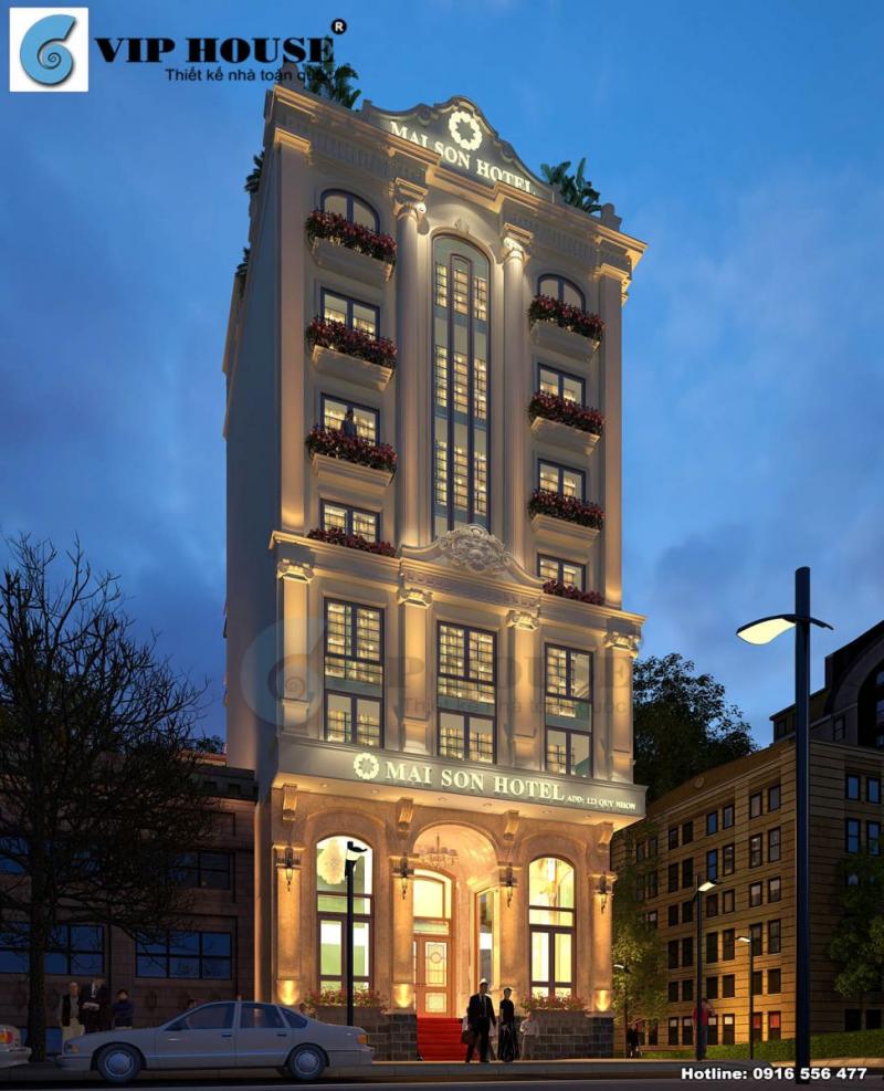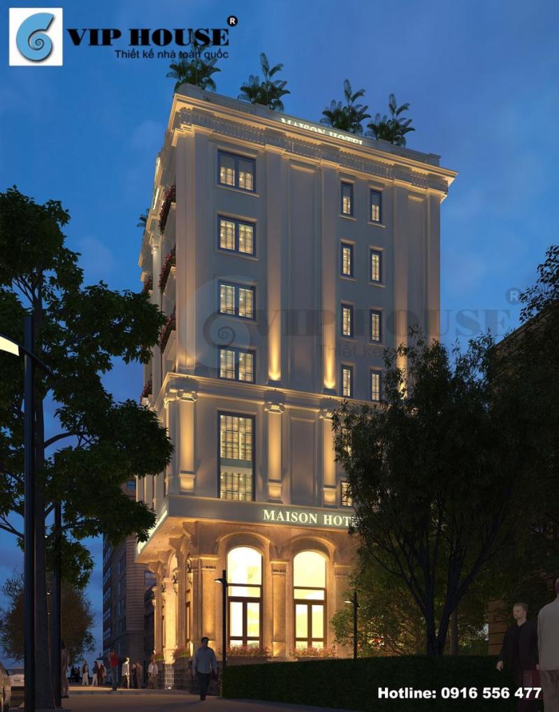Thiết kế khách sạn tân cổ điển 9 tầng có những nét đẹp riêng khó nhầm lẫn với những mẫu thiết kế khách sạn mini khác bởi nó có sự đầu tư kĩ lưỡng về tài chính cũng như được thiết kế từ đội ngũ kiến trúc sư dày dặn kinh nghiệm và linh hoạt từ Vip House hân hạnh mang đến cho quý khách một nơi nghỉ dưỡng sang trọng và tiện nghi nhất.