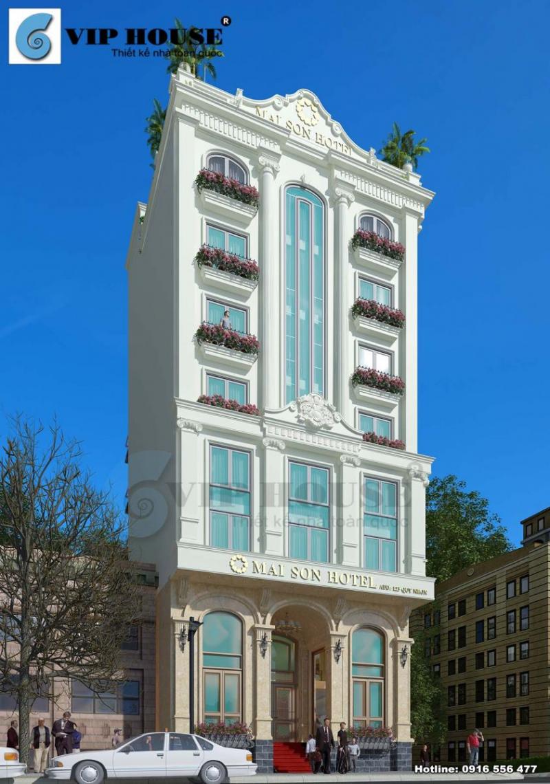 Thiết kế khách sạn tân cổ điển Mai Sơn được thiết kế theo kiến trúc mở với nhiều khung cửa sổ lớn tạo nên góc nhìn thoáng và rộng cho khách đến nghỉ dưỡng có thể quan sát không gian xung quanh một cách bao quát cho dù ở bất cứ căn phòng nào.