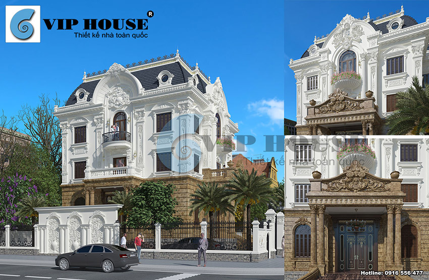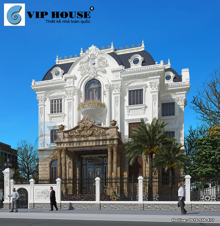 Trong suốt những năm hoạt động trong lĩnh vực thiết kế kiến trúc và nội thất, Vip House được biết đến là một thương hiện uy tín, có tên tuổi và là đơn vị hàng đầu trong loại hình thiết kế kiến trúc phong cách Pháp. Luôn tạo ra những sản phẩm thiết kế biệt thự tân cổ điển kiểu Pháp đa dạng, phong phú và sang trọng, đẳng cấp là mục tiêu thiết kế mà các kts Vip House luôn hướng tới. Một trong những mẫu thiết kế biệt thự đẹp tiêu biểu theo phong cách kiến trúc này là công trình biệt thự tân cổ điển kiểu Pháp tại Ninh Bình được giới thiệu trong những hình ảnh dưới đây. Những điểm đặc trưng nhất của phong cách kiến trúc tân cổ điển Pháp được kts Vip house sử dụng một cách ấn tượng khiến ngôi biệt thự y như một dinh thự đẳng cấp châu Âu được tin chọn cho một cuộc sống hoàn hảo nhất của gia đình. Mời bạn đọc cùng chiêm ngưỡng những hình ảnh dưới đây để cảm nhận vẻ đẹp của mẫu thiết kế biệt thự tân cổ điển này: