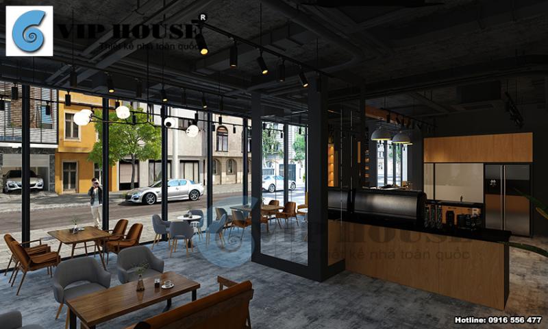 Không gian quán được thiết kế với kiến trúc mở tối đa. Những khung cửa đều được làm từ kính hiện đại tạo nên sự cuốn hút và sự kết nối giữa hai bên trong, ngoài công trình.
