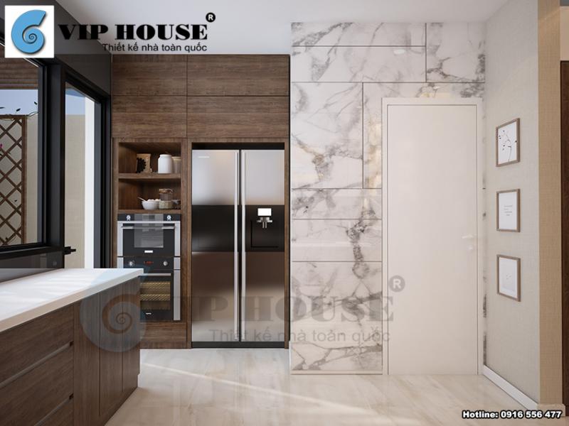 Tiếp tục khám phá căn phòng bếp của mẫu thiết kế nội thất đẹp để cảm nhận về sự hợp lý trong cách sắp xếp đồ dùng của kiến trúc sư Vip House. Những đồ bếp được sắp xếp gọn gàng mang lại những lối đi và tối đa công năng sử dụng cho biệt thự.