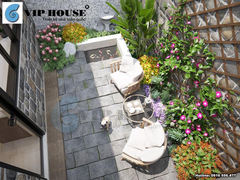 Sân vườn sinh động với nhiều loại cây cảnh và hoa lá sắc màu khiến cho nhiều người không khỏi bất nhờ. Hồ cá nhỏ nhân tạo phía góc vườn sẽ là sự giải trí độc đáo dành cho chủ nhân của căn nhà.