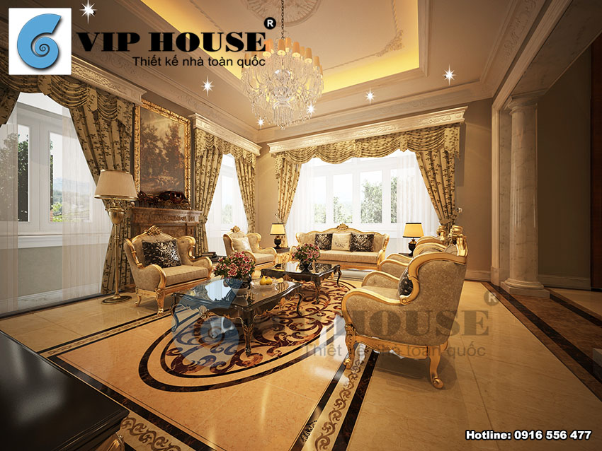 Thiết kế nội thất tân cổ điển là phong cách thiết kế nằm giữa 2 phong cách hiện đại và cổ điển, để không phải phân vân là nên thiết kế theo phong cách hiện đại hay cổ điển thì bạn có thể chọn thiết kế theo phong cách tân cổ điển. Phong cách thiết kế này là sự kết hợp những nét đẹp tinh túy nhất và bổ sung, sửa đổi những nhược điểm của hai phong cách cổ điển và hiện đại, chính vì thế thiết kế nội thất tân cổ điển sẽ không bao giờ trở nên lỗi thời như nhiều phong cách khác. Vip House là thương hiệu đã phát triển lâu năm trong lĩnh vực thiết kế kiến trúc và nội thất và đặc biệt rất có uy tín cũng như tiếng tăm trong lĩnh vực thiết kế kiến trúc nội thất theo phong cách cổ điển, tân cổ điển. Sau đây chúng tôi sẽ giới thiệu tới bạn đọc một trong những mẫu thiết kế nội thất tân cổ điển tiêu biểu được bạn bè đồng nghiệp và đối tác đánh giá cao. Đó là mẫu thiết kế nội thất tân cổ điển cho biệt thự kiểu Pháp của gia đình chủ đầu tư Nguyễn Văn Tuấn tại thành phố Huế. Với vẻ đẹp sang trọng, tinh tế và cuốn hút, phương án thiết kế mà kts Vip House đưa ra đã làm cho gia chủ và các thành viên trong gia đình đánh giá rất cao trình độ và năng lực của đội ngũ kts Vip House. Mời bạn đọc cùng chiêm ngưỡng nhé: