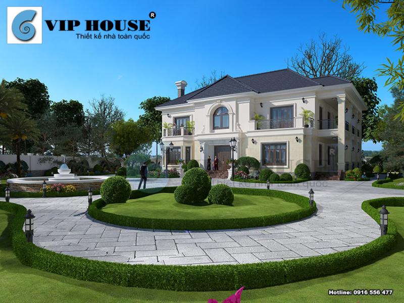 Khuôn viên tươi xanh với tiểu cảnh và cây cối bao phủ kết hợp với kiến trúc hoàn hảo khiến cho căn biệt thự trở thành căn nhà mơ ước của biết bao người. Chúng tôi sử dụng hai gam màu chính cho ngoại thất của biệt thự là trắng và vàng. Với gam màu trắng, việc mang lại sự tinh tế, trang nhã của công trình sẽ trở nên dễ dàng hơn. Còn đối với gam màu vàng nhạt, kiến trúc sư Vip House tin rằng đây là gam màu có thể mang đến nét đẹp hoàng gia cho công trình.