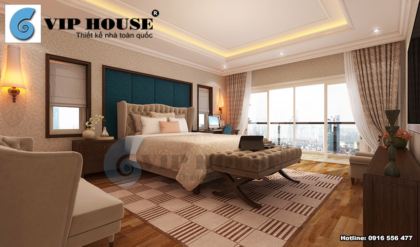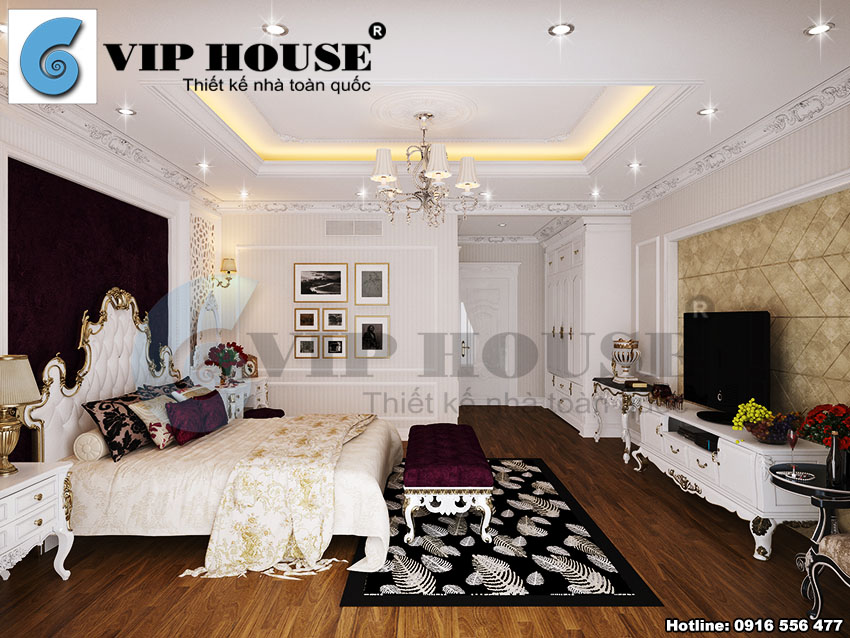 Bạn mong muốn mang đến sự tuyệt vời cho những không gian trong ngôi nhà của mình. Vip House sẽ đồng hành cùng bạn, mang đến cho gia đình bạn một không gian phòng ngủ tân cổ điển thật đẳng cấp, sang trọng và quyến rũ. Nội thất phòng ngủ tân cổ điển đẹp luôn là tâm điểm đáng chú ý mỗi chủ đầu tư bởi trong ngôi nhà, không gian phòng ngủ là nơi để chủ nhân nghỉ ngơi thư giãn sau một ngày dài làm việc mệt mỏi và căng thẳng. Đây sẽ là nơi chủ nhân căn phòng gạt bỏ những mệt mỏi của ngày ngủ và tiếp thêm năng lượng, sức sống cho ngày mới, chính vì vậy không gian phòng ngủ không những cần được thiết kế theo phong thủy, thẩm mỹ mà còn phải làm thế nào để mang đến sự tiện nghi và thoải mái tối đa phù hợp với sở thích và nhu cầu của người sử dụng. Thiết kế nội thất phòng ngủ cũng có rất nhiều phong cách thiết kế khác nhau, vừa phải theo ý muốn của chủ nhân lại vừa phải mang phong cách chung đồng bộ và thống nhất với không gian toàn nhà.Với những không gian sống trong biệt thự hay nhà phố, căn hộ mang phong cách kiến trúc châu Âu thì phòng ngủ tân cổ điển là ý tưởng rất phù hợp mang đến sự sang trọng và quyến rũ mà khó ai có thể chối từ. Mời bạn đọc cùng tham khảo 1 số phương án thiết kế nội thất tân cổ điển phòng ngủ dưới đây: