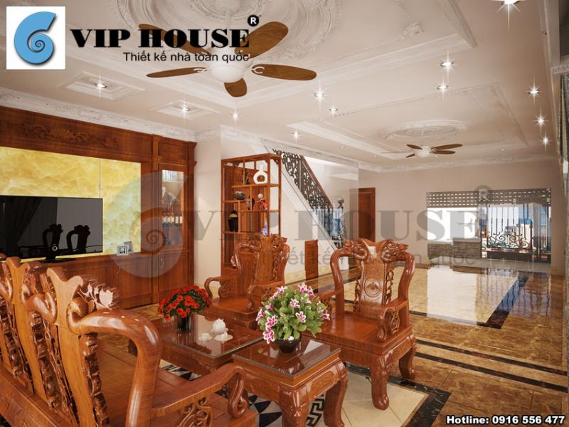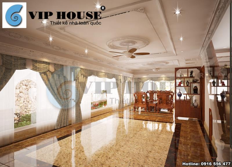 Chúng ta sẽ thật sự bị choáng ngợp bởi không gian phòng khách chính với bộ bàn ghế sang trọng được đặt ở trung tâm căn phòng. Chiếc đèn chùm lộng lẫy mang ánh sáng lung linh tới căn phòng.Không gian phiòng khách không chỉ thể hiện tiềm lực kinh tế mà còn thể hiện thái độ trân trọng, thiện chí của gia chủ với những vị khách của gia đình mình.