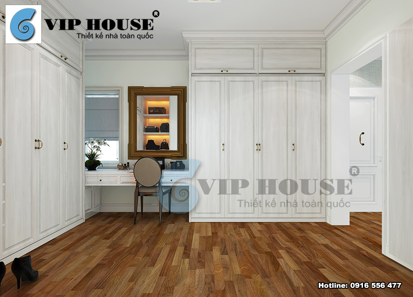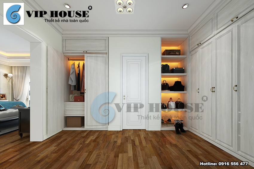 Màu sắc thiết kế trong phòng thay đồ được thiết kế đồng nhất với không gian toàn phòng mang đến sự sang trọng và tinh tế trong từng ngóc ngách của căn phòng.