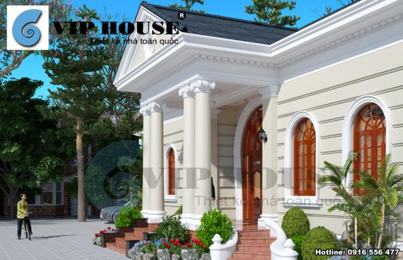Những khung cửa sổ được kiến trúc sư Vip House thiết kế với mái cong vòm tạo nên không gian ngoại thất đẹp mãn nhãn cho thiết kế biệt thự. Mẫu thiết kế biệt thự cổ điển Pháp 1 tầng nhẹ nhàng, sang trọng nhưng không hào nhoáng mà nó mang đến cảm giác gần gũi đến cho người xem. Những hệ thống cửa sổ kính gỗ cũng góp phần tạo nên kiến trúc mở mang ánh sáng đến cho những căn phòng.