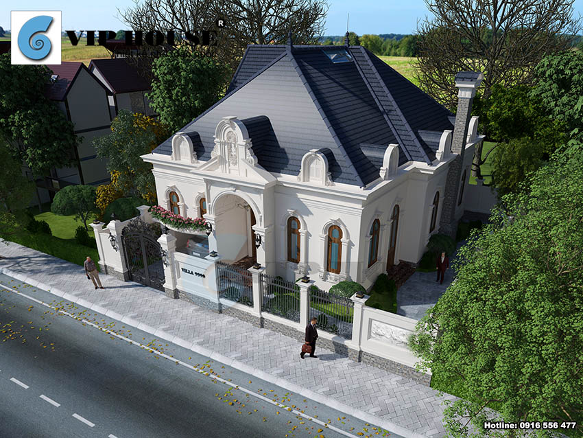 Thiết kế biệt thự 1 tầng cổ điển tại Thanh Hóa là một công trình mang phong cách kiến trúc cổ điển Pháp với nhiều chi tiết đặc trưng của phong cách này.