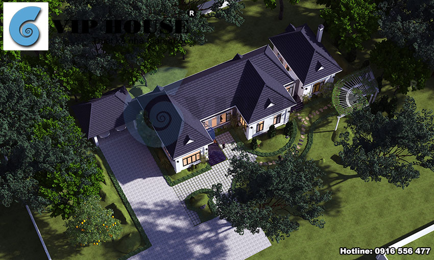 Một không gian sống, một Thiết kế biệt thự 1 tầng 3 phòng ngủ kiểu Pháp với tạo dáng rất nhẹ nhàng. 1 tầng với diện tích 180m2 trên một khuôn khổ đất rộng đã đem đến một khoảng không gian sống cực kỳ thoải mái mà gia chủ đã dành cho những người thân của mình.