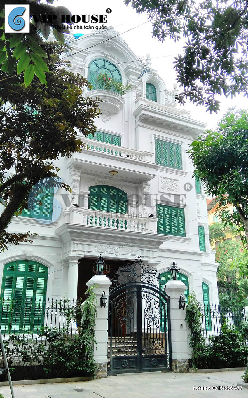 Các mẫu thiết kế phong cách kiến trúc Pháp  luôn mang đến sự sang trọng, gây ấn tượng mạnh mẽ bởi tính quy mô, sự đầu tư công phu. Không chỉ là lối kiến trúc đạt tới trình độ thẩm mỹ cao, trường tồn với thời gian, các thiết kế biệt thự tân cổ điển còn tôn vinh đời sống, khẳng định đẳng cấp của gia chủ.  Nằm trong khu phố Trung Yên sầm uất náo nhiệt, thiết kế biệt thự tân cổ điển 4 tầng của chủ đầu tư Nguyễn Minh Vương là một sự tái hiện tuyệt vời trường phái kiến trúc Châu Âu sang trọng, đẳng cấp. Với công trình thiết kế này, Vip House đã thể hiện rất thành công đặc trưng của kiến trúc Pháp vào trong mỗi góc nhà, mang đến sự sang trọng và lịch lãm cho tổng thể kiến trúc biệt thự kiểu Pháp của gia chủ. Thiết kế theo phong cách tân cổ điển giúp cho không gian sống luôn cao cấp, tiện nghi và có được sự hài hòa từ chi tiết cho đến tổng thể. Mời bạn đọc cùng chiêm ngưỡng những hình ảnh đẹp của công trình trong bài viết dưới đây nhé: