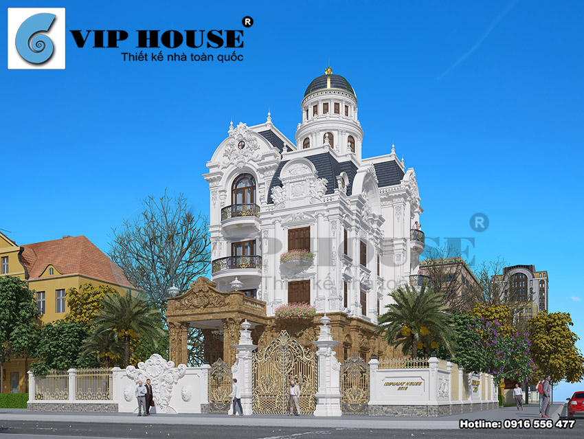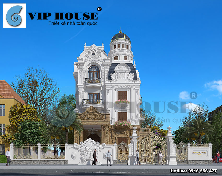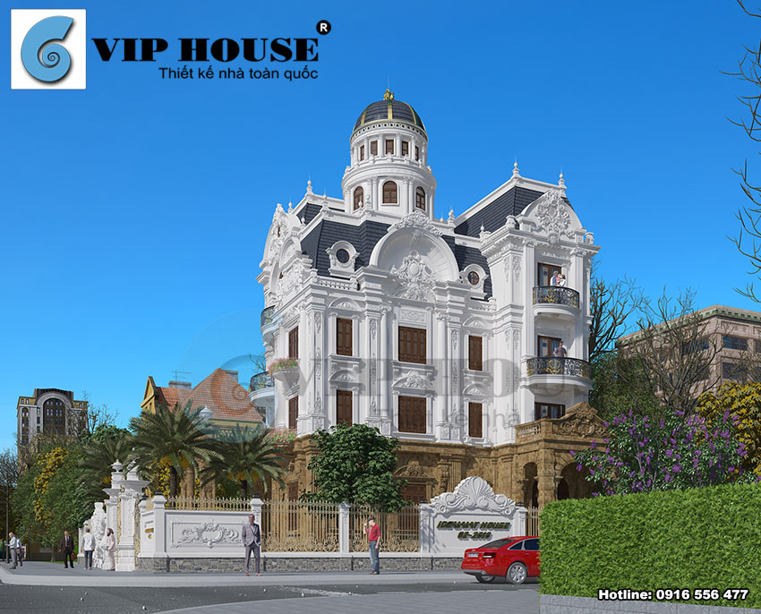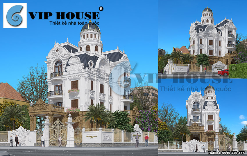 Chủ đầu tư tại Ninh Bình có sở hữu mảnh đất có diện tích rộng rãi và kế hoạch xây dựng một ngôi nhà thật sự hoành tráng để thể hiện được quyền lực và địa vị của mình trong xã hội. Tham khảo nhiều nơi và tìm hiểu nhiều nguồn thông tinh, chủ đầu tư đã rất ấn tượng với những công trình biệt thự Pháp của Vip House. Anh đã ngay lập tức gọi điện đến văn phòng công ty để nhờ tư vấn thiết kế biệt thự cho gia đình mình. Anh cũng tâm sự rằng: Các công trình biệt thự cổ điển Pháp của Vip House tôi đều thấy được sự lộng lẫy và bề thế đúng như những gì tôi mong muốn cho ngôi biệt thự của mình. Vì vậy tôi tìm tới Vip House chỉ hy vọng rằng các bạn thiết kế cho tôi một ngôi nhà có thể truyền tải hết những tâm tư tình cảm, những gì mà tôi cần có để tôi có thể tự hào. Không phụ lòng mong mỏi của anh, Vip House đã về tận nơi khảo sát hiện trạng khu đất và quá trình lên phương án thiết kế đã diễn ra nhanh chóng. Mẫu thiết kế biệt thự cổ điển Pháp ra đời đã khiến cho chủ đầu tư vô cùng hài lòng. Mời bạn đọc cùng chiêm ngưỡng vẻ đẹp mà Vip House đã tạo dựng nên cho ngôi nhà này qua những hình ảnh dưới đây: