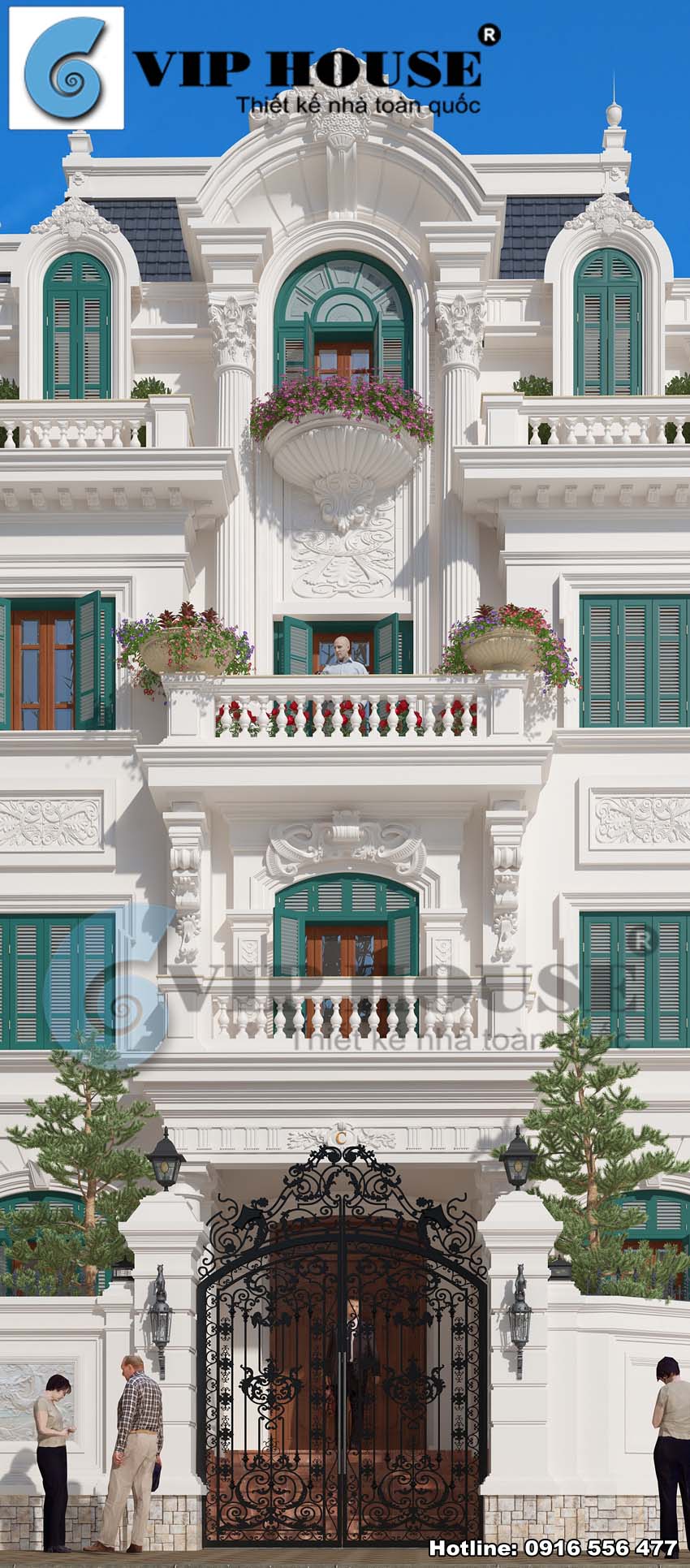 Thiết kế biệt thự Pháp cổ điển xuất hiện kiêu hãnh trên trung tâm con phố với ưu điểm nổi bật nhất là sở hữu 2 mặt tiền. Nét đẹp sang trọng, khang trang mà nó thể hiện khó có thể thấy ở một công trình nào khác bởi mỗi công trình do Vip House thiết kế luôn sở hữu trong mình một nét đẹp riêng rồi.