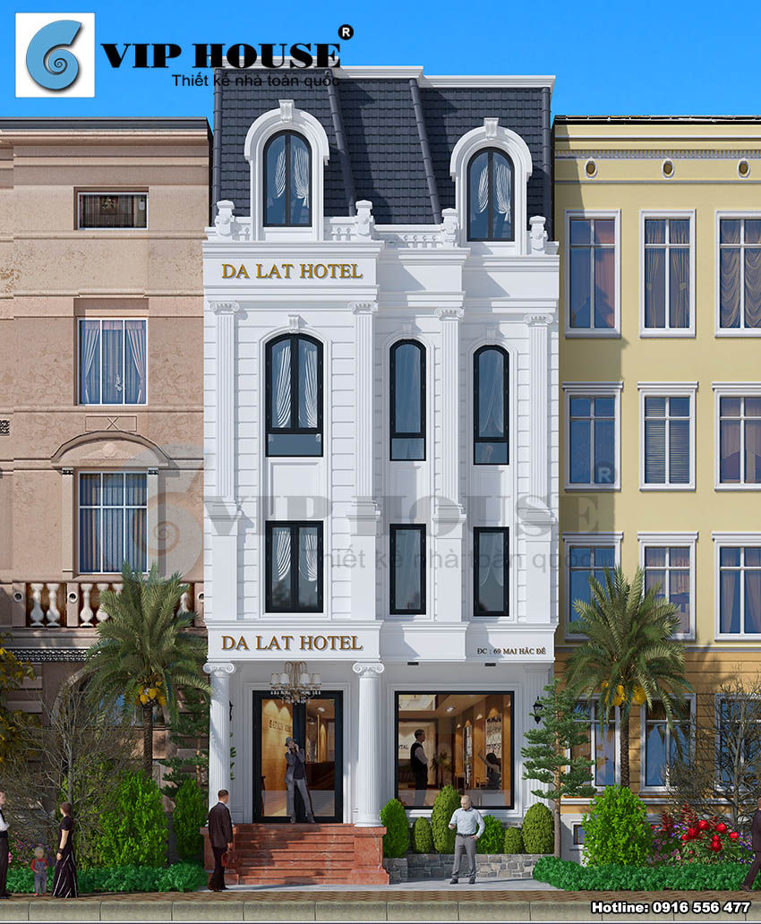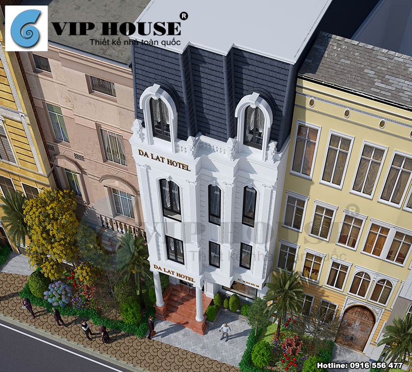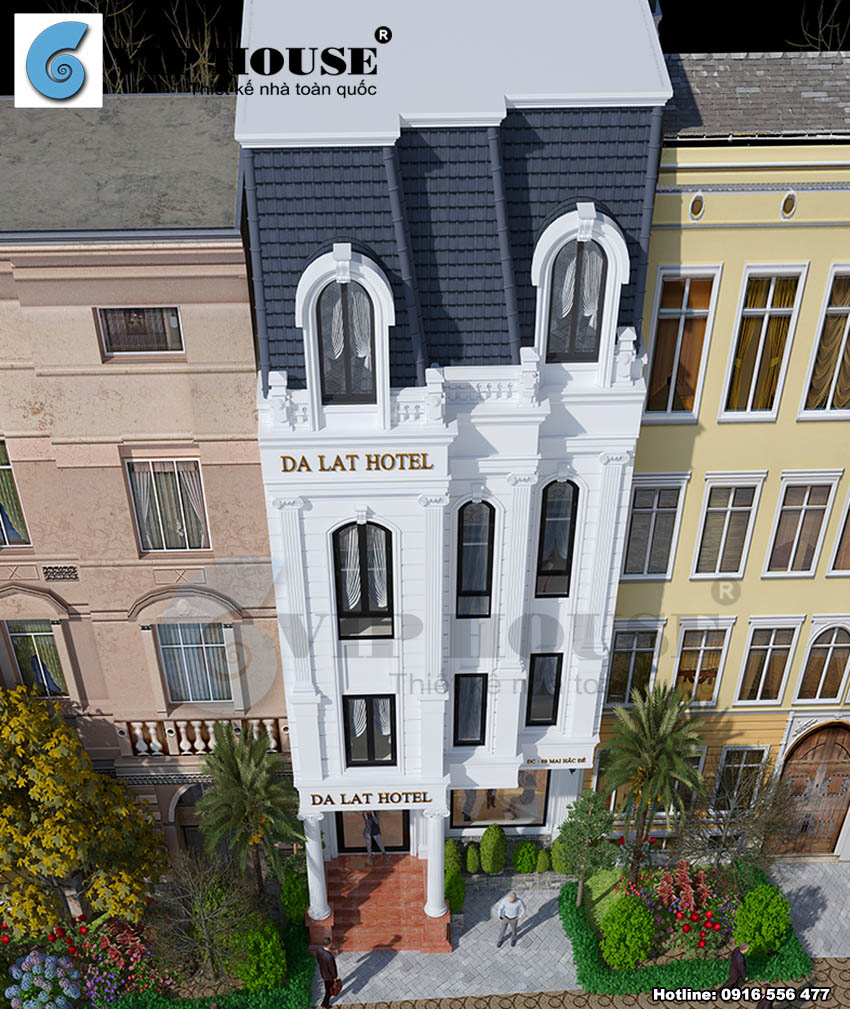 Chủ đầu tư sở hữu một mảnh đất nằm trên con phố Mai Hắc Đế – thành phố Đà Lạt. Anh muốn xây dựng một khách sạn nổi bật giữa vô vàn những khách sạn, biệt thự khác trong khu vực. Với những yêu cầu khắt khe về bố trí mặt bằng và công năng của khu đất, anh đi tìm kiếm một đơn vị thiết kế khách sạn chuyên nghiệp có thể tạo cho công trình khách sạn của mình một sự khác biệt và hơn hết là tạo nên ưu điểm về kiến trúc mặt tiền công trình. Khi biết đến Vip House, chủ đầu tư cũng đã thật sự ấn tượng đối với những công trình thiết kế khách sạn mang đặc trưng của phong cách Pháp mà Vip House đã thiết kế. Lựa chọn công ty thiết kế khách sạn chuyên nghiệp như Vip House đã mang tới cho chủ đầu tư một công trình vô cùng ấn tượng.