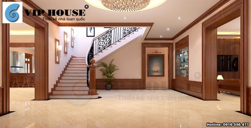 Công trình thiết kế nội thất biệt thự hiện đại 2 tầng được kts Vip House thiết kế tại Phú Thọ. Công trình được thiết kế với diện tích sử dụng 300m2/sàn, tầng 1 bao gồm khách, bếp ăn và 2 phòng ngủ. Tầng 2 được bố trí 4 phòng ngủ, phòng thờ, phòng đa năng và khu sinh hoạt chung.