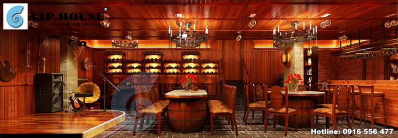 Đá lát sàn độc đáo đã góp một phần không nhỏ tạo nên không gian đẹp thi vị cho không gian tầng hầm. Những quầy rượu, kệ trưng bày rượu được bố trí hợp lý thuận tiện cho khách tới thăm có thể dễ dàng tìm thấy những loại rượu mà mình yêu thích.