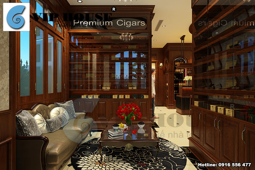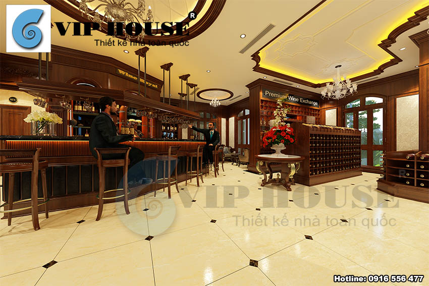 Tạm biệt không gian cổ điển tầng hầm ta cùng đến với không gian sang trọng của showroom rượu ở tầng hai. Mở ra là sự sang trọng trong từng đồ dùng trong căn phòng. Với cách bố trí hợp lý, tầng một căn biệt thự vốn rộng rãi nay càng trở nên thoáng mát hơn.