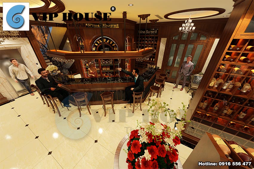 Hàng trăm loại rượu đến từ nhiều quốc gia trên thế giới đã có mặt tại căn phòng. Khách tới thăm có thể thoải mái lựa chọn loại rượu ưa thích làm quà hoặc tiêu dùng cá nhân. Với thiết kế nội thất kiểu Pháp những chiếc đèn trùm là chi tiết trang trí không thể thiếu cho nên căn phòng này được sử dụng tối đa các loại đèn nhằm mang tới không gian phương Tây đẹp cuốn hút.