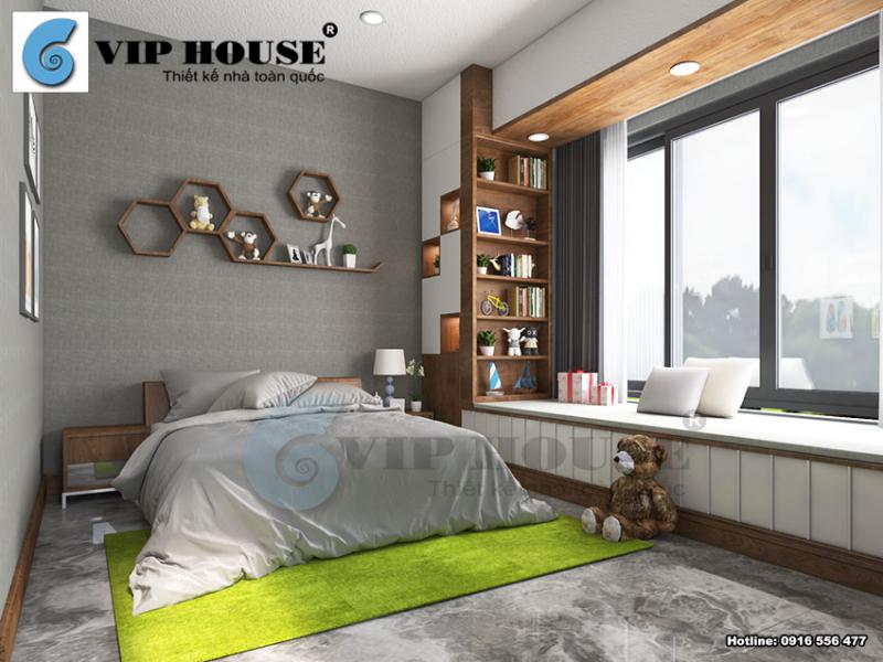 Thiết kế nội thất phòng ngủ con trai nhỏ gia đình còn có thêm không gian dành riêng cho việc học tập và vui chơi của bé.
