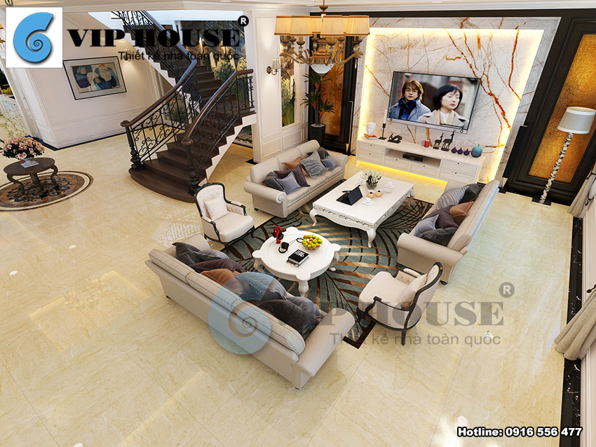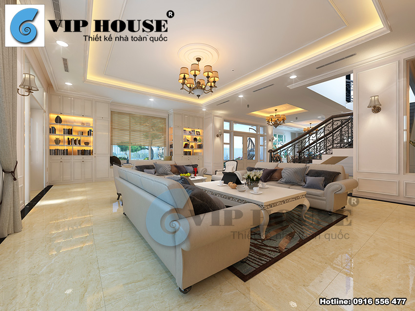 Nội thất phòng khách đẹp luôn là tâm điểm đáng chú ý của một ngôi nhà, là nơi thể hiện diện mạo chính của toàn bộ không gian nội thất cũng như là khuôn mặt của gia chủ. Nội thất phòng khách có rất nhiều phòng cách thiết kế để lựa chọn sao cho thật phù hợp với sở thích của gia chủ cũng như phù hợp với không gian kiến trúc ngoại thất tổng thể. Để tìm ra một mẫu thiết kế nội thất có thể làm hài lòng nhiều đối tượng khách hàng kể cả những khách hàng khó tính nhất thì đó là phong cách thiết kế nội thất tân cổ điển kiểu Pháp. Không gian phòng khách được trang trí theo phong cách tân cổ điển luôn là sự lựa chọn hàng đầu cho những dòng nhà ở trung cao cấp, các dòng nhà ống, nhà phố, biệt thự lâu đài có kiến trúc tân cổ điển hay kiến trúc Pháp. Phòng khách thiết kế phong cách tân cổ điển mang đến sự sang trọng, bền đẹp và trường tồn theo thời gian đồng thời giúp gia chủ có được sự tiện nghi, thoải mái nhất. Mời bạn đọc cùng chiêm ngưỡng một mẫu thiết kế nội thất tân cổ điển phòng khách đẹp ấn tượng của Vip House được giới thiệu trong bài viết dưới đây: