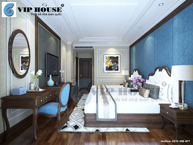 Thiết kế nội thất khách sạn tân cổ điển Pháp tại Mai Sơn Hotel không giống như những mẫu thiết kế thông thường khác bởi đây là không gian khách sạn sang trọng và tiện nghi. Thiết kế nội thất phòng ngủ theo phong cách thiết kế đầu tiên, kiến trúc sư Vip House lựa chọn gam màu tinh tế đặc trưng được nhiều người yêu thích.