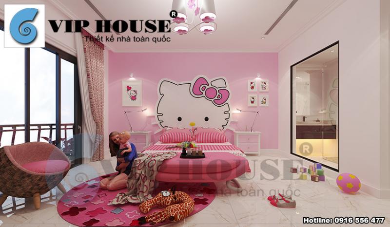 Thiết kế nội thất phòng ngủ con gái phong cách tân cổ điển nổi bật với cách thiết kế hiện đại, tươi trẻ và đầy năng động.