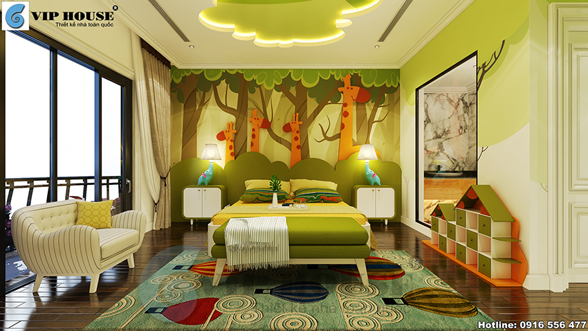 Thiết kế nội thất tân cổ điển phòng ngủ con trai ấn tượng và sinh động với chủ đề thiết kế thiên nhiên và động vật