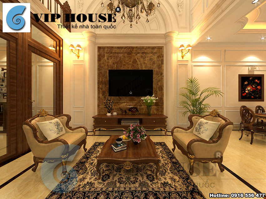 Sở hữu một ngôi nhà độc đáo, sang trọng, tiện nghi và mang tính nghệ thuật là điều mà bất kỳ khách hàng và chủ đầu tư nào cũng muốn. Với mong muốn đó, anh Tuấn tại Ninh Bình đã lựa chọn phong cách thiết kế nội thất tân cổ điển cho ngôi nhà của mình. Nhờ có niềm yêu thích và kinh nghiêm thiết kế nhiều năm với phong cách tân cổ điển, Vip House đã có cơ hội hợp tác và hoàn thành mong muốn đó của anh. Qua trao đổi, chúng tôi đã hiểu rõ yêu cầu của anh, và anh cũng đã hiểu rõ về quy cách làm việc cũng như dịch vụ thiết kế và thi công của Vip House. Khi anh đã khá hài lòng và đồng ý sử dụng dịch vụ, chúng tôi đã tiến hành từng bước tìm hiểu chi tiết từng nét tính cách, sở thích của từng người trong gia đình chị để đưa ra ý tưởng thiết kế sơ bộ. Sau đó sẽ tiến hành khảo sát mặt bằng để đưa ra bản thiết kế chi tiết. Mẫu thiết kế nội thất tân cổ điển biệt thự kiểu Pháp sau đó đã được lên phương án 3D và gửi tới chủ đầu tư. Anh đã rất khen ngợi Vip House sau khi chiêm ngưỡng những hình ảnh mà chúng tooi gửi tới. Mời bạn đọc cùng tham khảo và cảm nhận vẻ đẹp của mẫu thiết kế nội thất này qua những hình ảnh được chúng tôi gửi đến trong bài viết dưới đây: