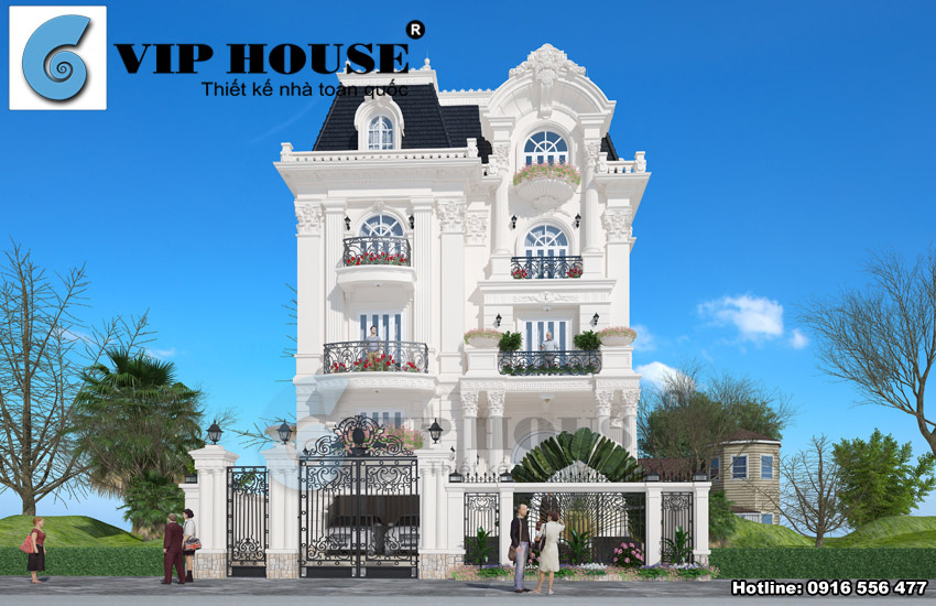 Thiết kế biệt thự Pháp cổ điển 4 tầng được thiết kế với sự chú trọng nhiều tới các chi tiết cầu kỳ với một tỷ lệ kỹ thuật chuẩn mực.