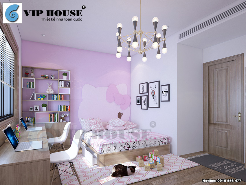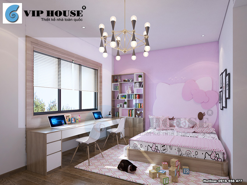 Phòng ngủ hiện đại này sẽ là nơi sinh hoạt và học tập mang đến nhiều trải nghiệm cho cô con gái nhỏ
