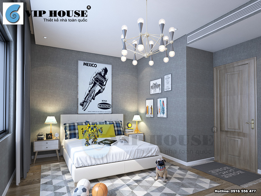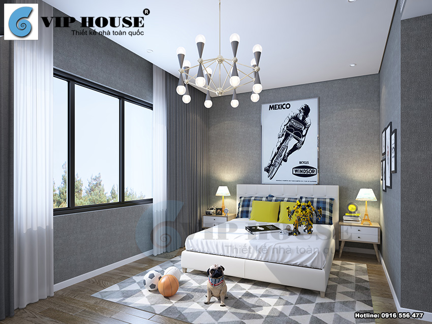 Mẫu thiết kế nội thất đẹp hiện đại phòng ngủ con trai sở hữu những vật dụng trang trí phù hợp với sở thích và tính cách của cậu con trai