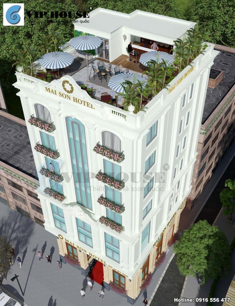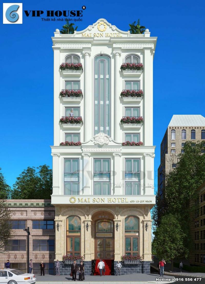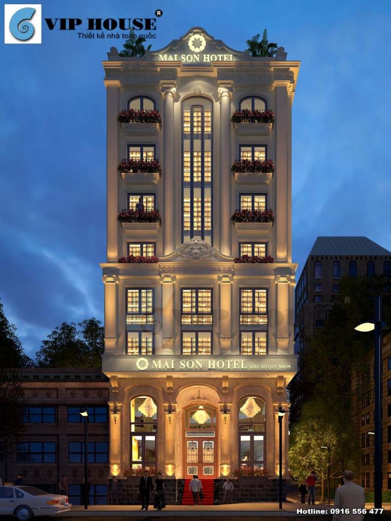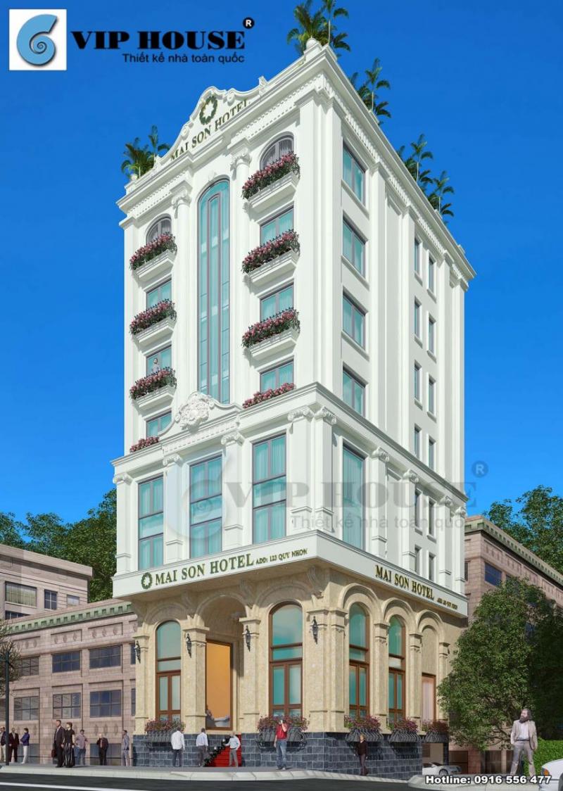 Thiết kế khách sạn Mai Sơn được chủ đầu tư yêu cầu khá cao về kiến trúc cũng như thẩm mỹ nhưng với thiết kế kiến trúc tân cổ điển sang trọng, mẫu thiết kế đã khiến cho nhiều người đắm say.
