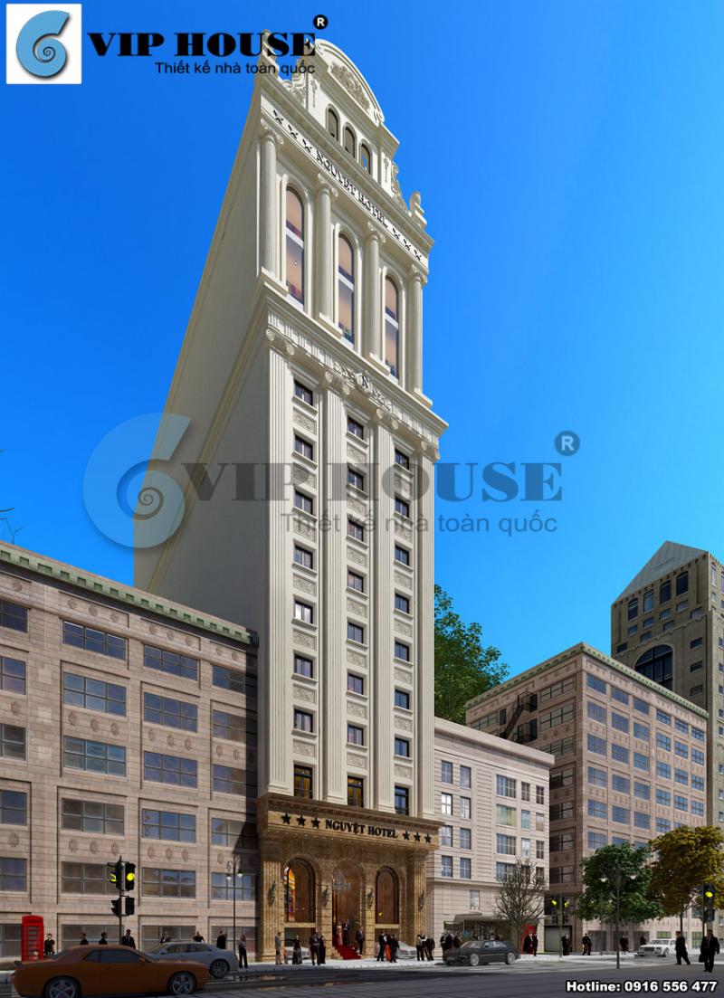 Mẫu thiết kế khách sạn cổ điển 3 sao với 13 tầng mang hình khối và kiến trúc đúng tỉ lệ chuẩn của phong cách cổ điển khiến nhiều người đắm say.